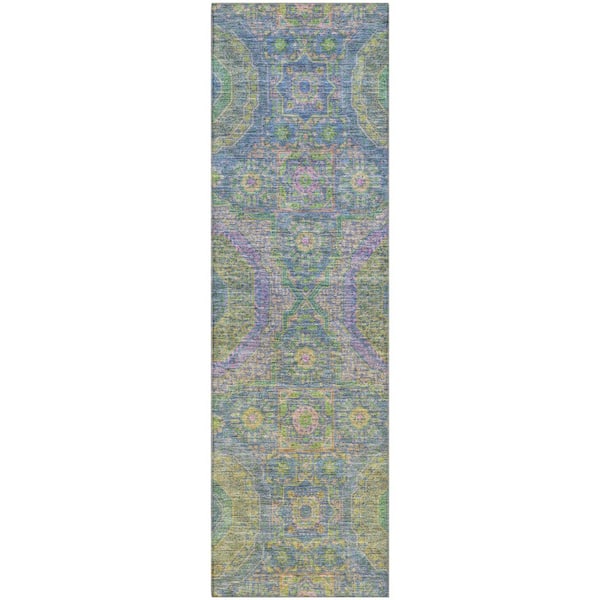 Mayfield Premium Machine Washable Abstract AMF1923 Blue 2 ft. x 7 ft. Runner Rug