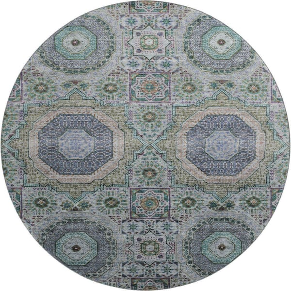 Mayfield Premium Machine Washable Abstract AMF1923 Green 8 ft. x 8 ft. Round Rug