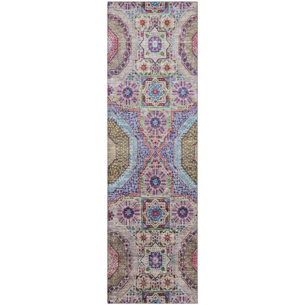 Mayfield Premium Machine Washable Abstract AMF1923 Purple 2 ft. x 7 ft. Runner Rug