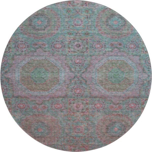 Mayfield Premium Machine Washable Abstract AMF1923 Teal 8 ft. x 8 ft. Round Rug