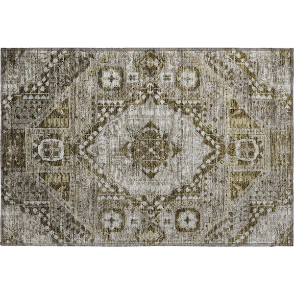 Mayfield Premium Machine Washable Abstract AMF1924 Khaki 2 ft. x 3 ft. Accent Rug