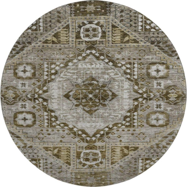 Mayfield Premium Machine Washable Abstract AMF1924 Khaki 8 ft. x 8 ft. Round Rug