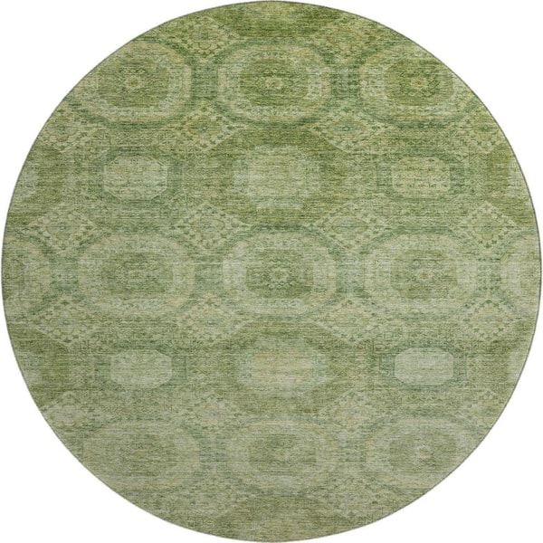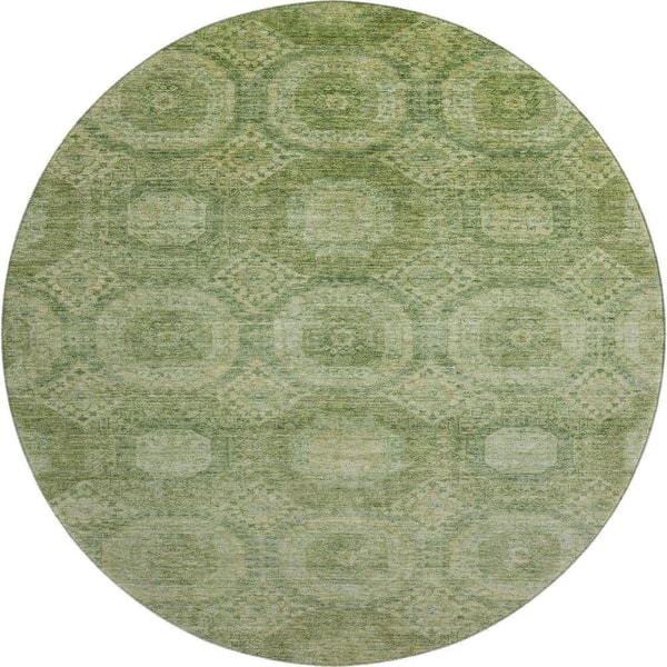Mayfield Premium Machine Washable Abstract AMF1925 Aloe 8 ft. x 8 ft. Round Rug