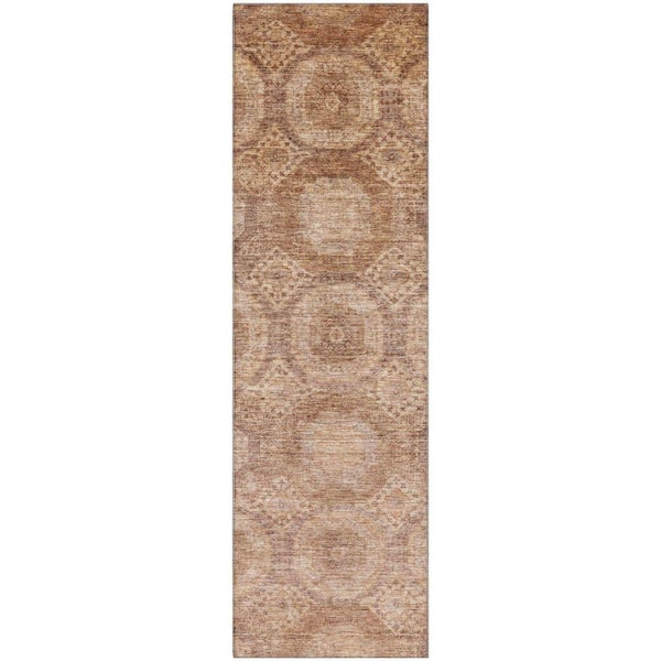 Mayfield Premium Machine Washable Abstract AMF1925 Copper 2 ft. x 7 ft. Runner Rug