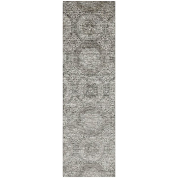 Mayfield Premium Machine Washable Abstract AMF1925 Pewter 2 ft. x 7 ft. Runner Rug