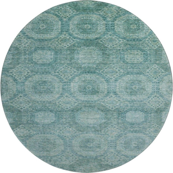 Mayfield Premium Machine Washable Abstract AMF1925 Teal 8 ft. x 8 ft. Round Rug