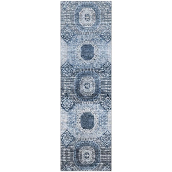 Mayfield Premium Machine Washable Abstract AMF1926 Blue 2 ft. x 7 ft. Runner Rug