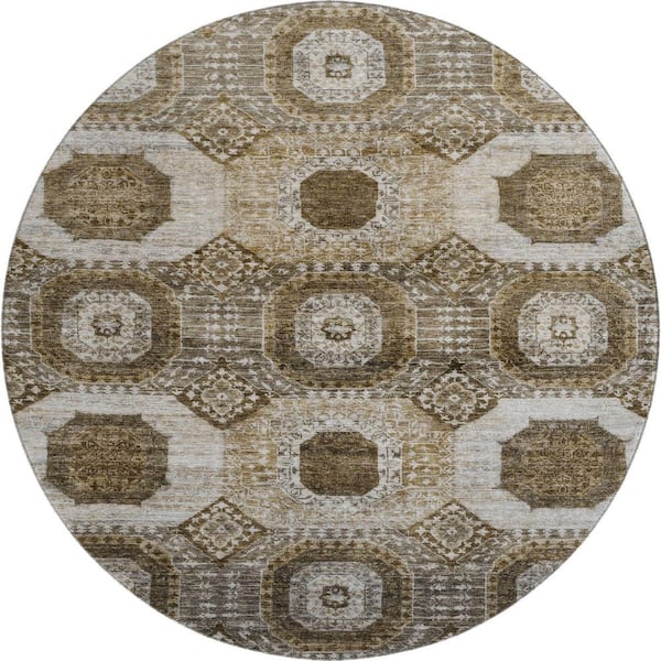Mayfield Premium Machine Washable Abstract AMF1926 Brown 8 ft. x 8 ft. Round Rug