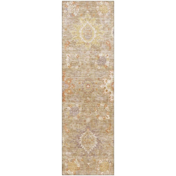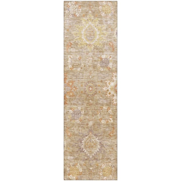 Mayfield Premium Machine Washable Abstract AMF1927 Beige 2 ft. x 7 ft. Runner Rug