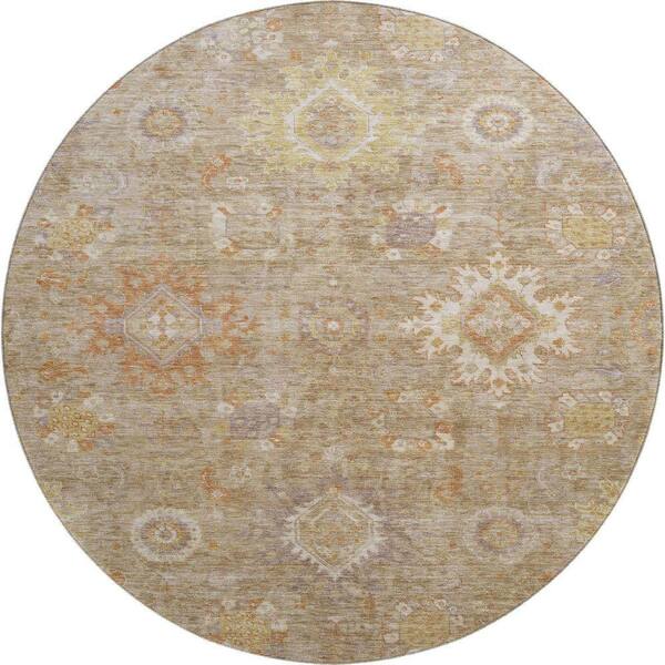 Mayfield Premium Machine Washable Abstract AMF1927 Beige 8 ft. x 8 ft. Round Rug