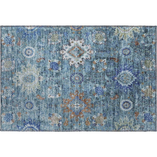 Mayfield Premium Machine Washable Abstract AMF1927 Blue 2 ft. x 3 ft. Accent Rug