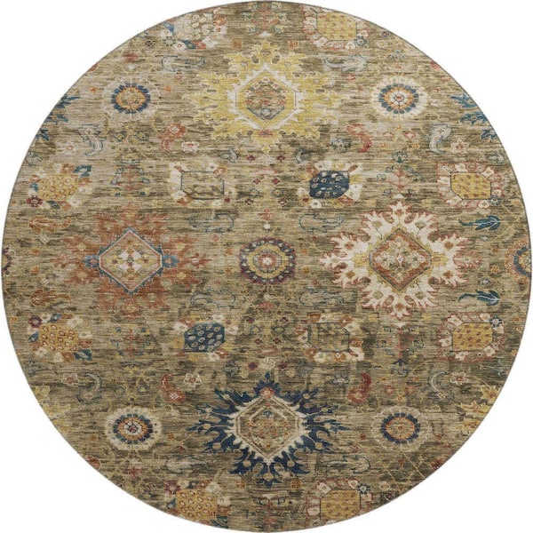 Mayfield Premium Machine Washable Abstract AMF1927 Brown 8 ft. x 8 ft. Round Rug