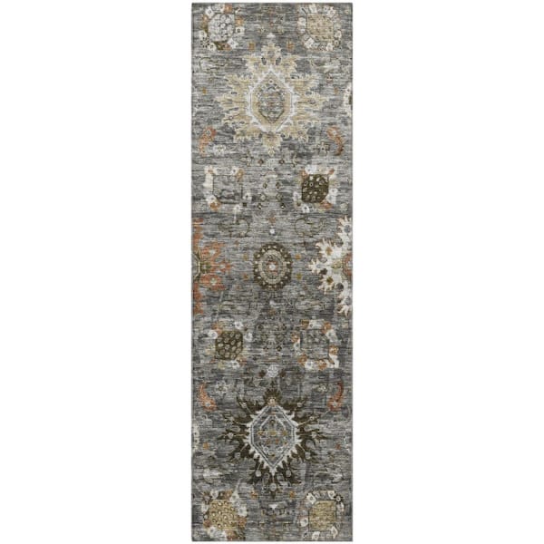 Mayfield Premium Machine Washable Abstract AMF1927 Pewter 2 ft. x 7 ft. Runner Rug
