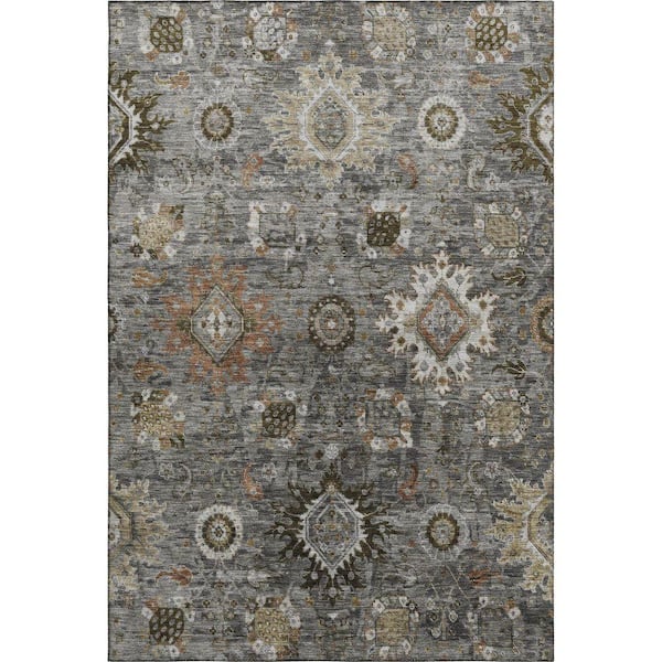 Mayfield Premium Machine Washable Abstract AMF1927 Pewter 9 ft. x 12 ft. Area Rug