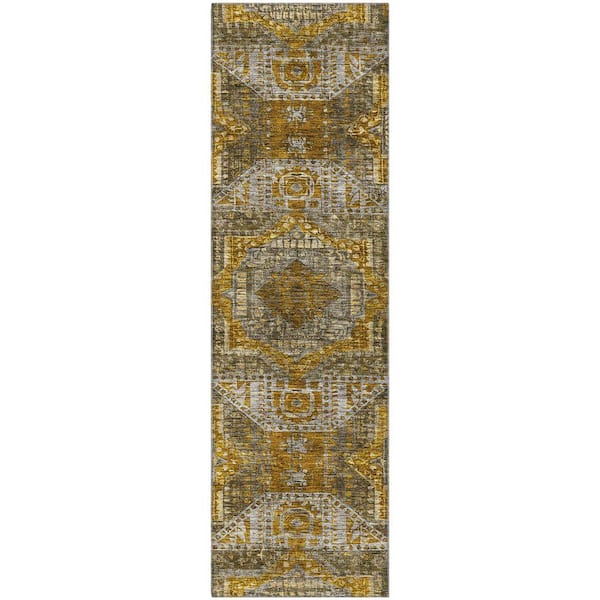Mayfield Premium Machine Washable Abstract AMF1928 Brown 2 ft. x 7 ft. Runner Rug