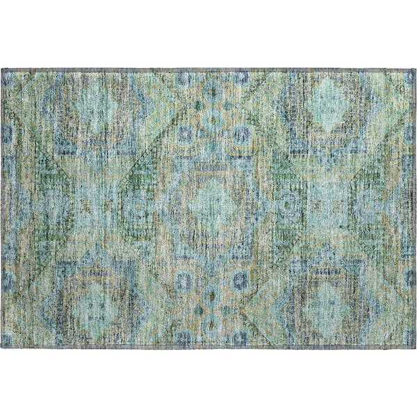 Mayfield Premium Machine Washable Abstract AMF1929 Green 2 ft. x 3 ft. Accent Rug