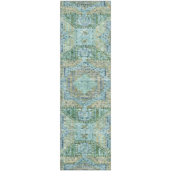Mayfield Premium Machine Washable Abstract AMF1929 Green 2 ft. x 7 ft. Runner Rug