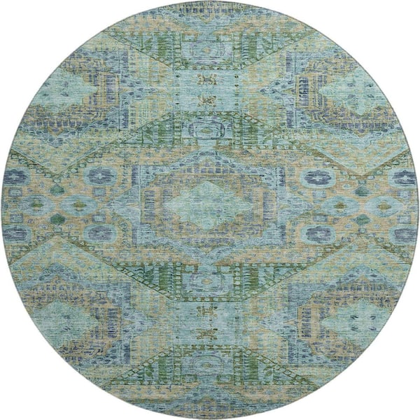 Mayfield Premium Machine Washable Abstract AMF1929 Green 8 ft. x 8 ft. Round Rug