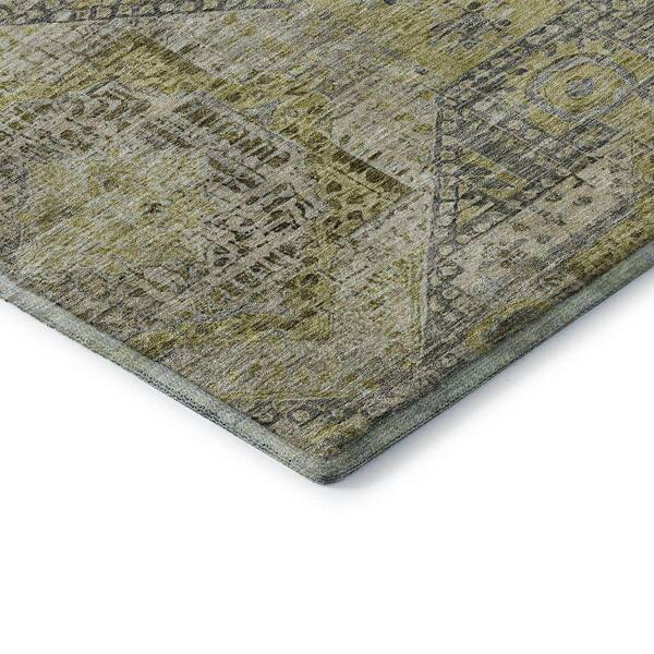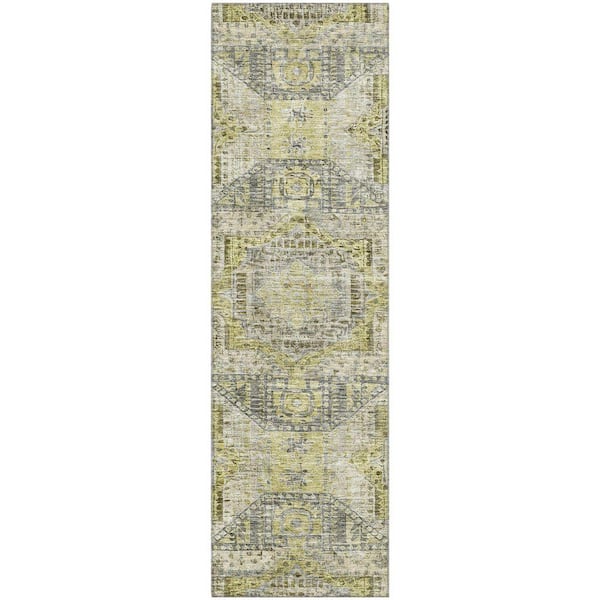 Mayfield Premium Machine Washable Abstract AMF1929 Khaki 2 ft. x 7 ft. Runner Rug