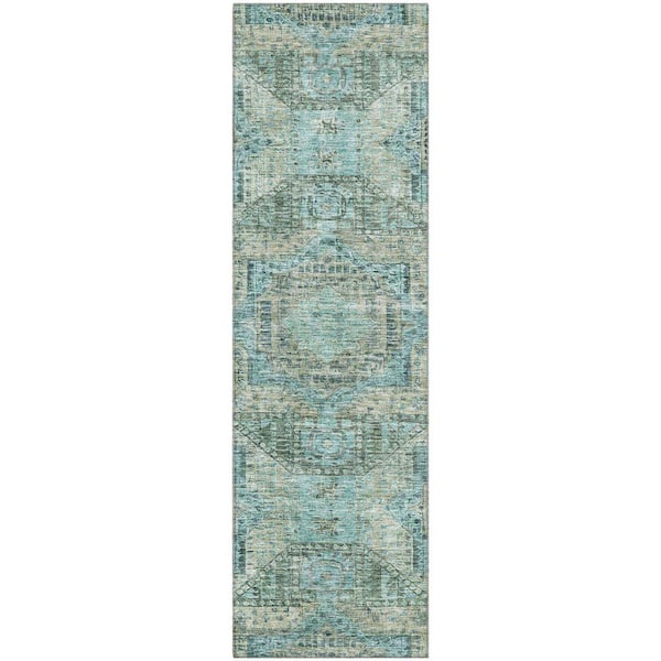 Mayfield Premium Machine Washable Abstract AMF1929 Sage 2 ft. x 7 ft. Runner Rug