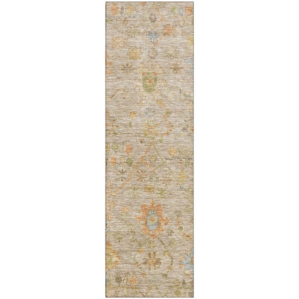Mayfield Premium Machine Washable Abstract AMF1930 Beige 2 ft. x 7 ft. Runner Rug