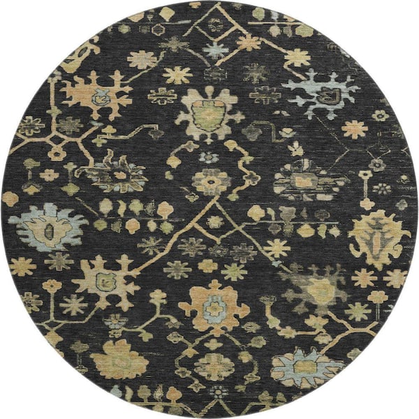 Mayfield Premium Machine Washable Abstract AMF1930 Black 8 ft. x 8 ft. Round Rug
