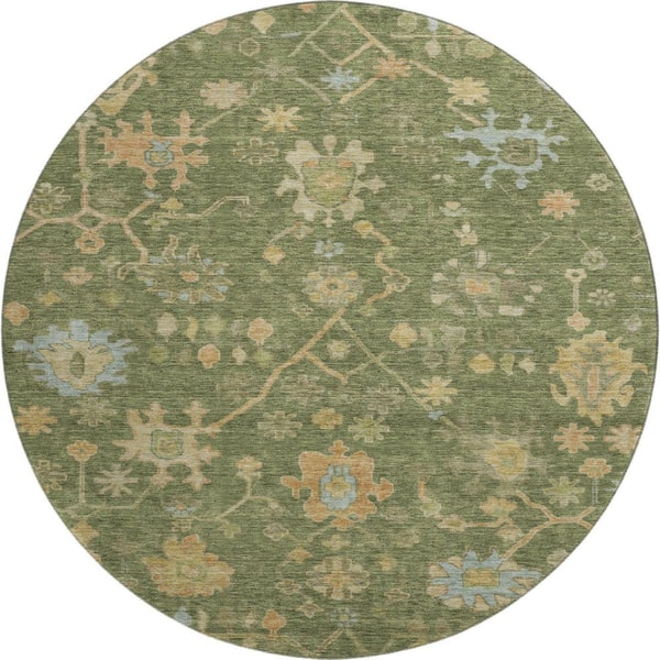 Mayfield Premium Machine Washable Abstract AMF1930 Fern 8 ft. x 8 ft. Round Rug