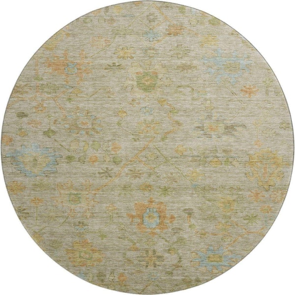Mayfield Premium Machine Washable Abstract AMF1930 Khaki 8 ft. x 8 ft. Round Rug