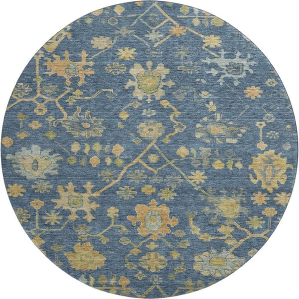Mayfield Premium Machine Washable Abstract AMF1930 Navy 8 ft. x 8 ft. Round Rug
