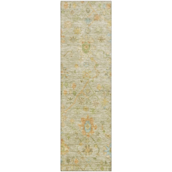 Mayfield Premium Machine Washable Abstract AMF1930 Sage 2 ft. x 7 ft. Runner Rug