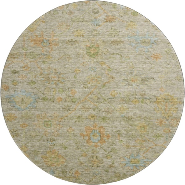 Mayfield Premium Machine Washable Abstract AMF1930 Sage 8 ft. x 8 ft. Round Rug