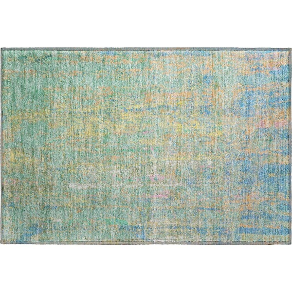 Mayfield Premium Machine Washable Abstract AMF1931 Teal 2 ft. x 3 ft. Accent Rug
