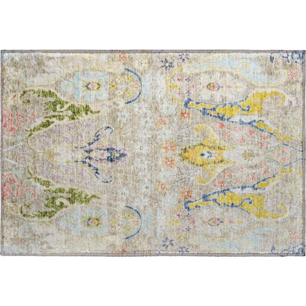 Mayfield Premium Machine Washable Abstract AMF1932 Beige 2 ft. x 3 ft. Accent Rug