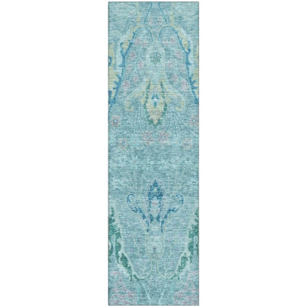 Mayfield Premium Machine Washable Abstract AMF1932 Blue 2 ft. x 7 ft. Runner Rug
