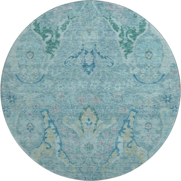 Mayfield Premium Machine Washable Abstract AMF1932 Blue 8 ft. x 8 ft. Round Rug