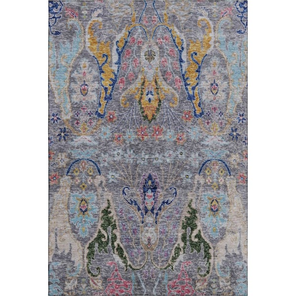 Mayfield Premium Machine Washable Abstract AMF1932 Gray 3 ft. x 5 ft. Area Rug
