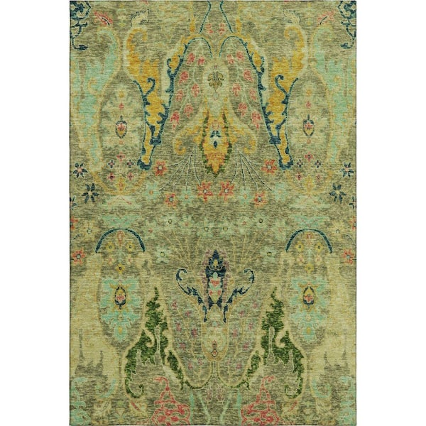 Mayfield Premium Machine Washable Abstract AMF1932 Green 5 ft. x 7 ft. 6 in. Area Rug