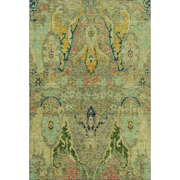 Mayfield Premium Machine Washable Abstract AMF1932 Green 8 ft. x 10 ft. Area Rug