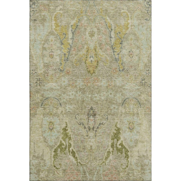Mayfield Premium Machine Washable Abstract AMF1932 Khaki 3 ft. x 5 ft. Area Rug