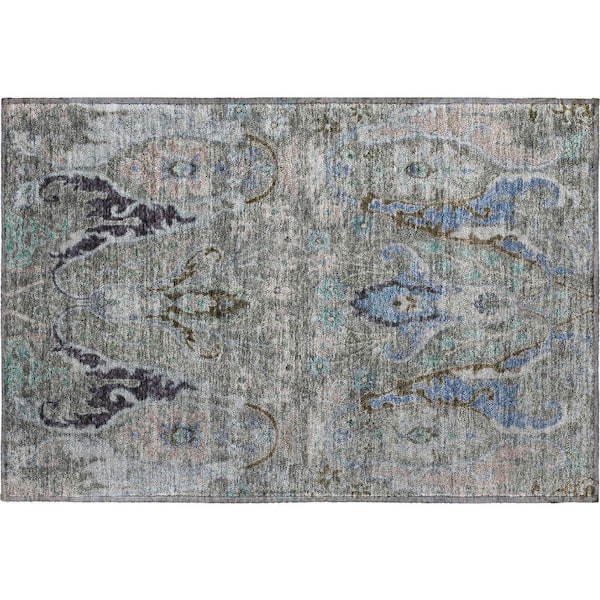 Mayfield Premium Machine Washable Abstract AMF1932 Pewter 2 ft. x 3 ft. Accent Rug