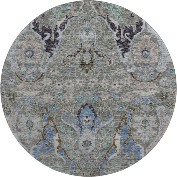 Mayfield Premium Machine Washable Abstract AMF1932 Pewter 8 ft. x 8 ft. Round Rug