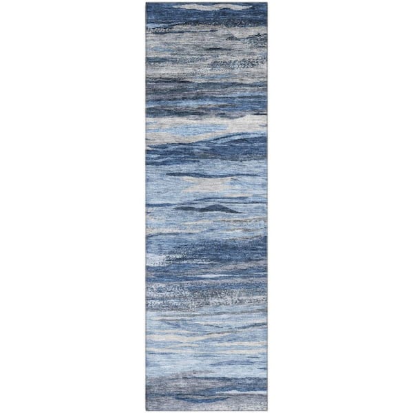 Mayfield Premium Machine Washable Abstract AMF1933 Blue 2 ft. x 7 ft. Runner Rug