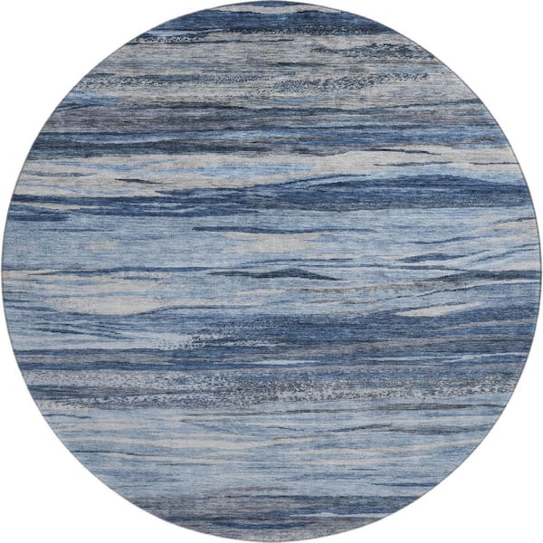 Mayfield Premium Machine Washable Abstract AMF1933 Blue 8 ft. x 8 ft. Round Rug
