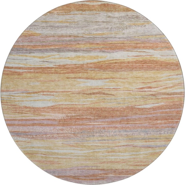 Mayfield Premium Machine Washable Abstract AMF1933 Salmon 8 ft. x 8 ft. Round Rug