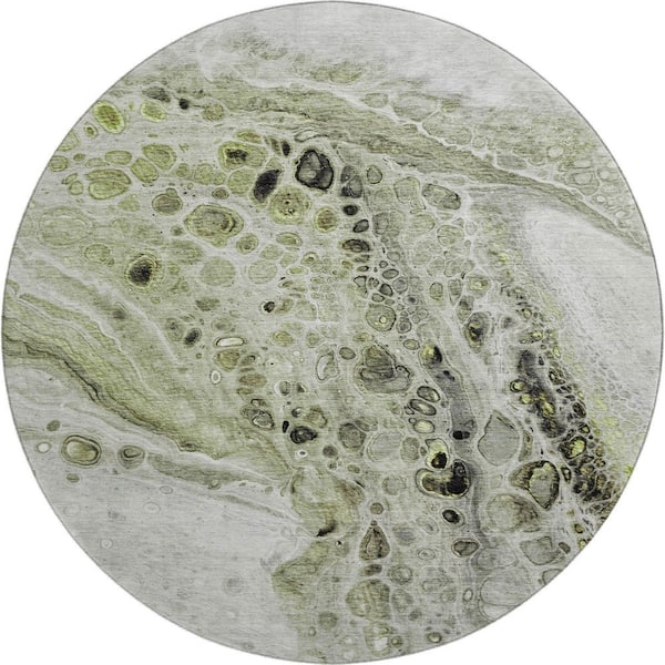 Mayfield Premium Machine Washable Abstract AMF1934 Aloe 8 ft. x 8 ft. Round Rug
