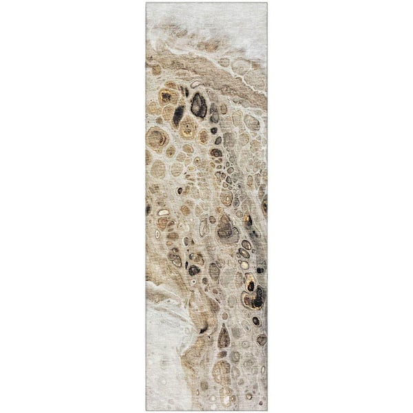 Mayfield Premium Machine Washable Abstract AMF1934 Beige 2 ft. x 7 ft. Runner Rug