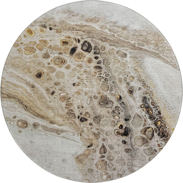 Mayfield Premium Machine Washable Abstract AMF1934 Beige 8 ft. x 8 ft. Round Rug