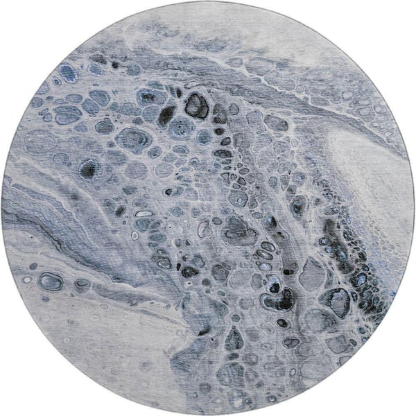 Mayfield Premium Machine Washable Abstract AMF1934 Blue 8 ft. x 8 ft. Round Rug