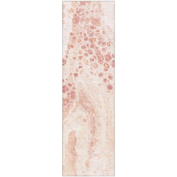Mayfield Premium Machine Washable Abstract AMF1935 Salmon 2 ft. x 7 ft. Runner Rug