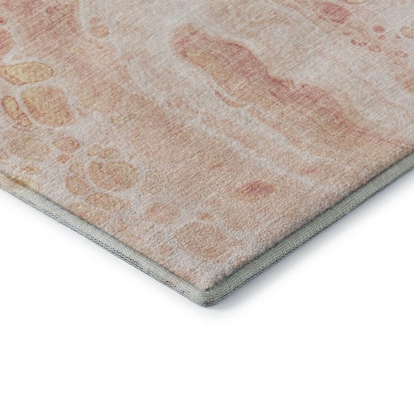 Mayfield Premium Machine Washable Abstract AMF1935 Salmon 8 ft. x 8 ft. Round Rug